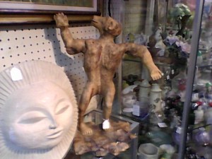 Inspirational Art? June 1, 2010March 18, 2021 / jstater I saw this fine piece of sculpture in an antique shop over the weekend. I’m guessing its an idol of an unspeakable baboon god, wrested from the household of a person wholly without taste. Share this: Click to share on X (Opens in new window) X Click to share on Facebook (Opens in new window) Facebook Like Loading... Related