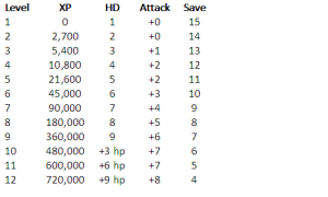 Prime Requisite: Constitution (13+ gets +5% bonus to earned experience).