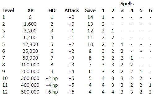 Prime Requisite: Constitution (13+ gets +5% bonus to earned experience).