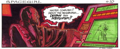 I just discovered Travis Charest’s Spacegirl comic strip online. I’ve been a fan of his artwork for years, and I can’t wait to read this space opera. It sparked the following two notions: