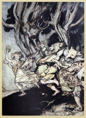 A magical spear is lodged in a crooked oak tree here. The spear has a red shaft and a bronze head and answers to the name ‘Longfellow’. It hums in the presence of warriors with more skill than its owner, and will do its best to get its owner killed so that the more powerful warrior can claim it.