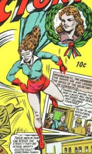 Joan Wayne (she gets points just for the name) is a stenographer in Washington DC who grows disgusted by the political corruption. She decides to fight corrupt politicians as costumed hero in league with the FBI. I know the idea of political corruption in our nation’s capitol sounds crazy, but hey – it was comic books!