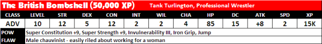Tank Turlington, also known as the British Bombshell, is a professional wrestler known for his John Bull-inspired costume and the endless parade of arm candy he shows off in the tabloids. The Secret Service believes him to be not only a meta-human, born with super powers, but also the director of SMASH, the Secret Mobilization Against Super Heroes, a criminal organization dedicated to removing the super heroic threat to their way of life.