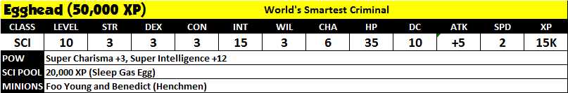 And with Egghead statted up, can Egg Fu be far behind? Robert Kanigher was like the Fiend Folio of comic book heroes and villains.