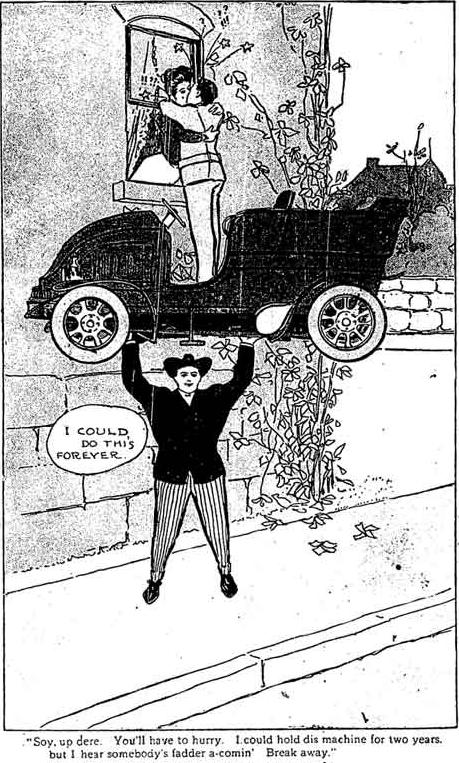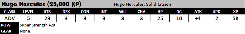 From Wikipedia – “A good-natured man endowed with superhuman strength, the character of Hugo wandered about town, helping people with their problems and shocking them with his surprising displays of power. He was so strong he could pick up an elephant, kick a house like a football, wield an artillery cannon like a handgun, and lift a locomotive engine off the tracks and pull its cargo behind him at train speeds.”