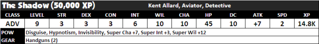 From Wikipedia – “In print, The Shadow’s real name is Kent Allard, and he was a famed aviator who fought for the French during World War I. He became known by the alias of The Black Eagle, according to The Shadow’s Shadow, 1933, although later stories revised this alias as The Dark Eagle beginning with The Shadow Unmasks, 1937. After the war, Allard seeks a new challenge and decides to wage war on criminals. Allard fakes his death in the South American jungles, then returns to the United States. Arriving in New York City, he adopts numerous identities to conceal his existence.