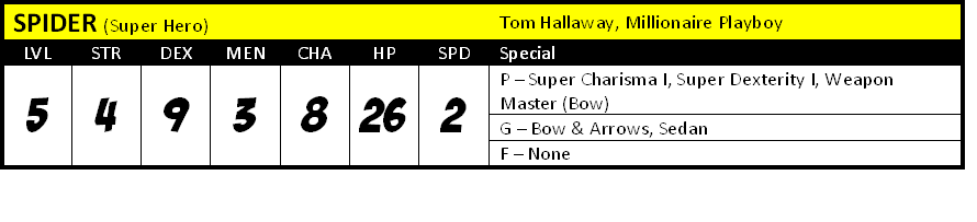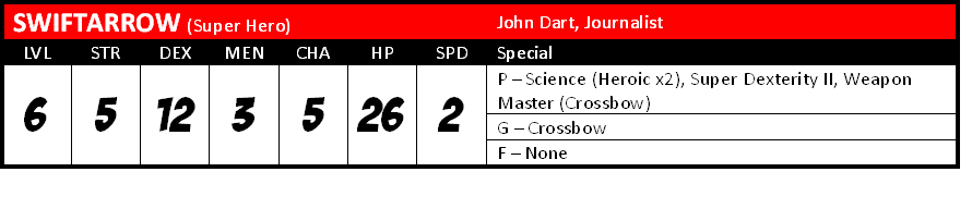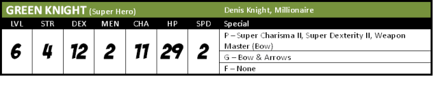 Captain Cole has a FIGHT of 6 + 3 + 2 = 11 and a DEFENSE of 6 + 1 = 7.