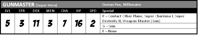 When Cole attacks Francois, he compares his FIGHT of 11 to Francois’ DEFENSE of 10, indicating a +1 bonus to attack.