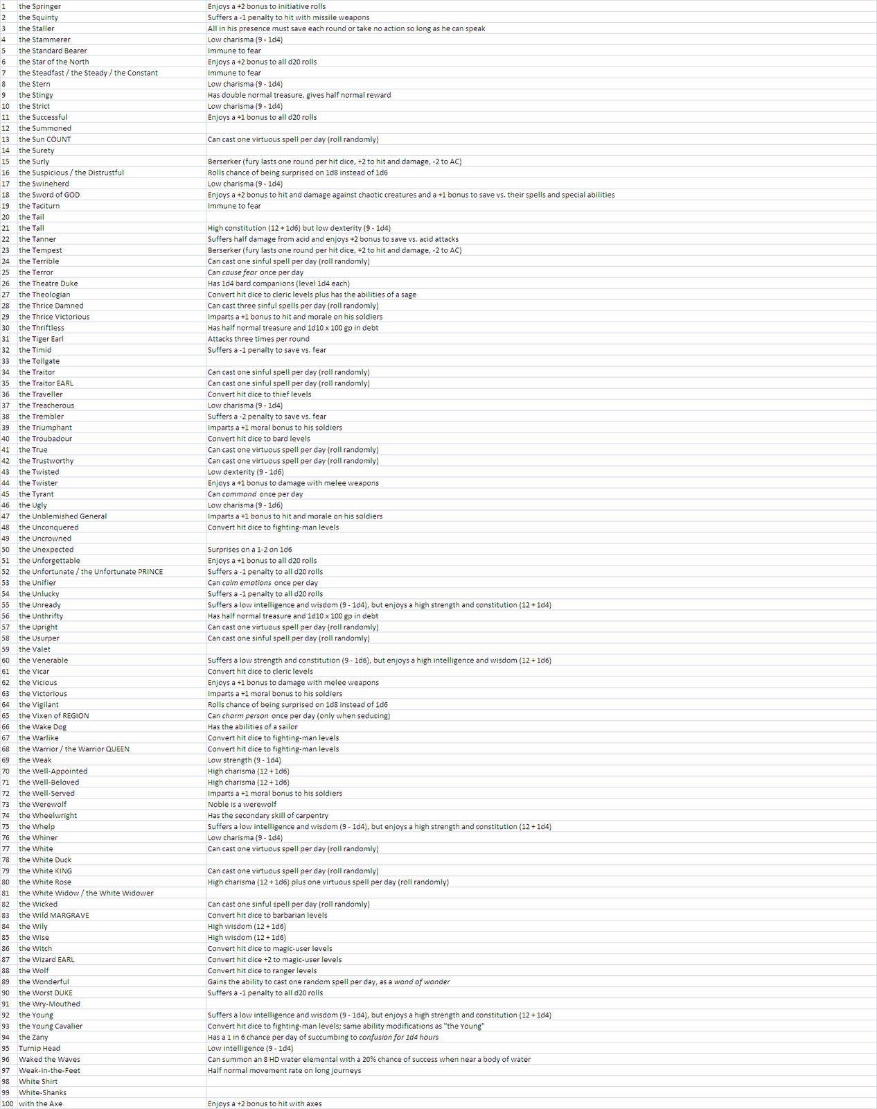 One “experience” is called Supernatural – this one goes into Victorian horror and science fiction – one roll, then back to the basic table and no more dips into the supernatural pool – can be ignored if the Referee does not wish to use this material in his or her game
