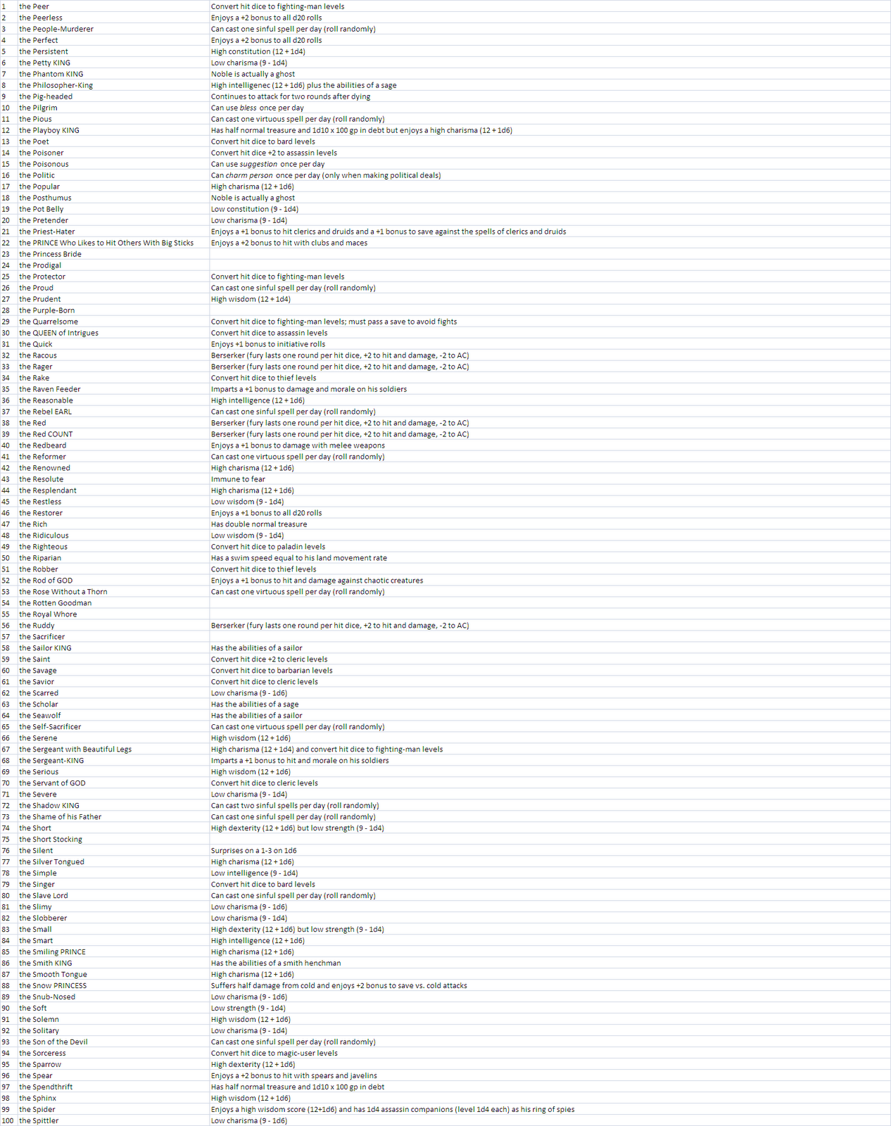14.87 Boring Wreck: A large earth borer made of steel with brass highlights has been abandoned here by the Master’s synthoids after the drill bit broke. The Master was already on to other projects and never reclaimed it. Eight were-weasels have now adopted it as a lair, and keep 60 cp, 170 gp, fifteen wolf skins (worth 8 gp each) and a small pearl worth 3 gp hidden inside.