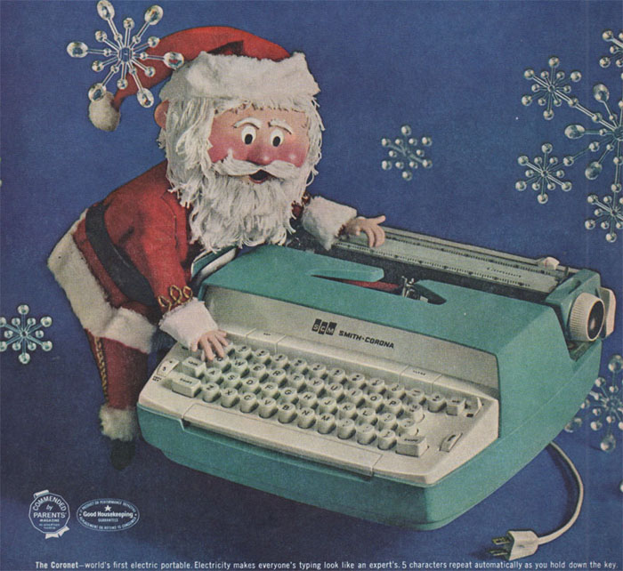 When I was a young lad, maybe 12, I remember borrowing a friend’s copy of B1 – In Search of the Unknown and transcribing it on my parent’s typewriter. Not as fancy a model as this (and they still have it!), but until I finally got an Apple IIE, the typewriter was one of my most important RPG tools. Image comes from James Lilek’s Merry Kitchmas site.