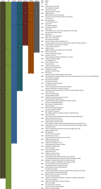 Then, we’ll look at some major event from world history and see how much these characters and their parents and grandparents experienced.