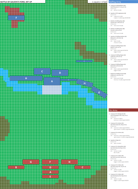 And so it was that the orcs of Chief Thundergut met the halflings of Sheriff Brando at Gaudin’s Ford.