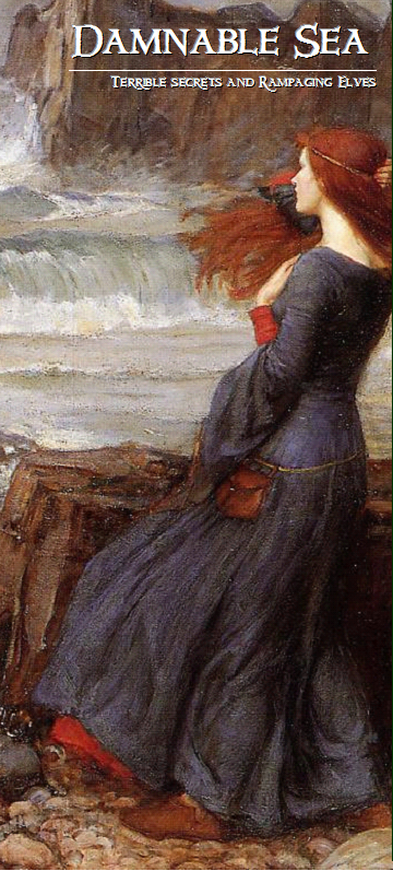 While the secrets (at least some of them) of the Virgin Woode were revealed in NOD 19, the Damnable Sea itself holds many secrets. An ancient elven empire lies beneath these waves. The Emperor Jasconius has conquered the city-states of Basilea and Tartessus, scattered the hated sahuagin to the currents, and now looks to extend his suzerainty above the waves, reclaiming from the humans the Virgin Woode as the ancient birthright of the elves. There are also the islands of demonic Satanazes and wondrous Bermoothes with its sorcerous Duke and, in the eastern depths, something more ancient and horrible than the elves.