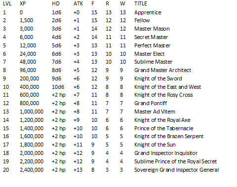 Our demigods are going to be a bit more human (or demi-human), and like other adventurers, are going to become more powerful as they advance in levels. In other words, they’re going to be on par with the other characters – don’t expect them to eclipse the magic-users, thieves and fighters in the party.