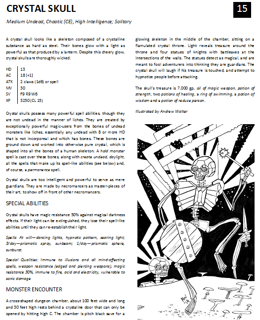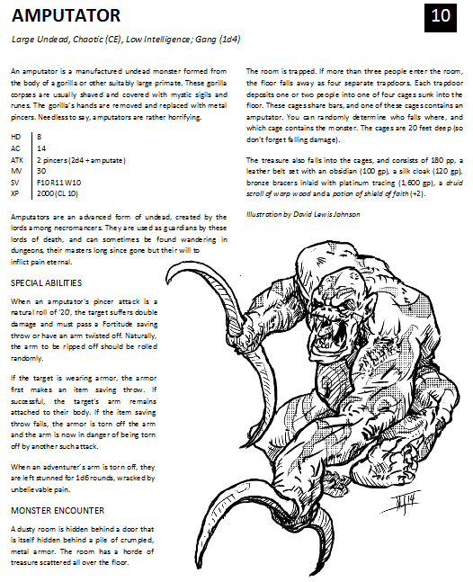 Now, since this post has been nothing but a commercial, I feel compelled to give a couple sample monsters from the Monster Tome, art included.