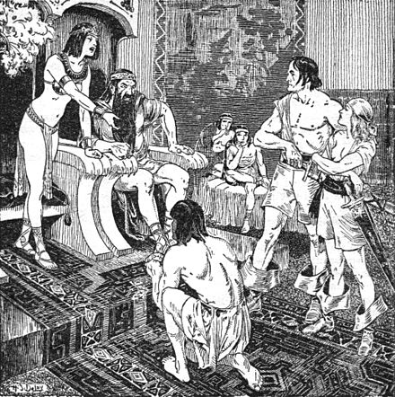 2) Low retention of wealth; you can keep 10% of your found treasure to spend on equipment and gear (maybe more if you use a system that requires paying for training to level up), giving the rest away. Treasure is there to be won, not enjoyed – think of it as catch-and-release. Treasure not kept must either be discarded as though it were trash, given to others (who may not spend it on you) with a hearty sniff of contempt, or spent in a tavern on booze and sex (i.e. drinks on the house, and you must drink until you collapse or get in a rip-roaring fight).