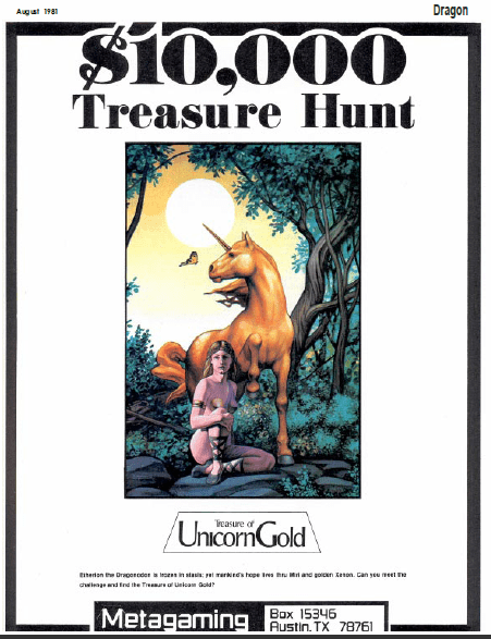 With the 2nd edition of Blood & Treasure essentially done (well, almost done), I can get back on track with these Dragon reviews. Number 52 is from August of 1981, and features a Boris Vallejo cover of a butterfly-winged dragon and beautiful naked woman … which of course is a rarity for a Boris painting. Boris gets a little full article inside the magazine as well.