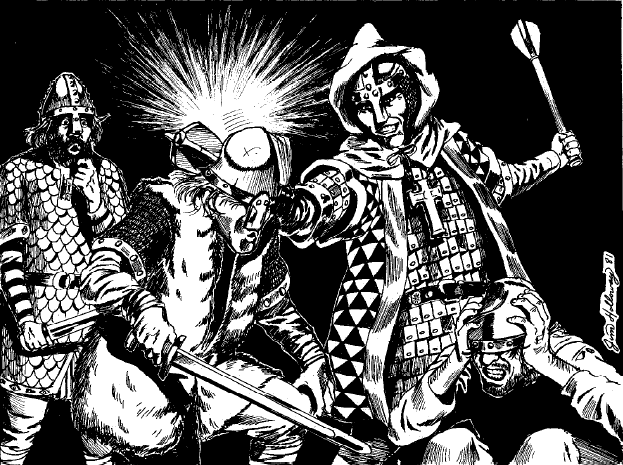 The first real article is dedicated to the much maligned cleric class. “The Role of the Cleric – Warriors with Wisdom” is by Robert Plamondon, and it does a nice job of explaining the class, some of its inspirations and ways to play it well. If the image below, by Jim Holloway, doesn’t make you want to play the class, I don’t know what will …