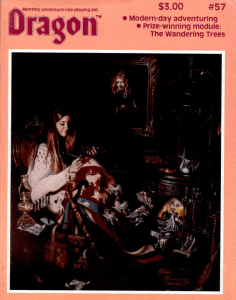 The special feature of this issue is an AD&D adventure called “The Wandering Trees” by Michael Malone. It is intended for characters level 6th to 9th. The adventure begins thus: