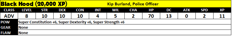 4. Likewise, it’s a good idea for everyone in the group to have at least one super ability score. Failed intelligence feats to make connections and find clues and failed charisma feats to acquire items and shake down thugs made it obvious that super abilities are highly useful. This was only highlighted when the super villains, built with 40,000 XP each to give them a fighting chance against the more numerous heroes, came in with more levels. Honestly, the Clown build was sub-optimal as well – his swords were pretty pathetic, while the Brute’s iron claws almost took out Nightmare.