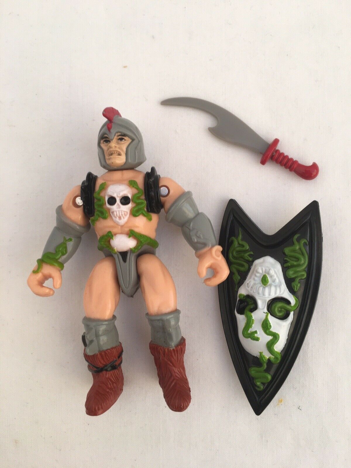 Along with the articulated figures, there were numerous molded figures in the line. As a kid, I assumed they weren’t really for playing alongside the other figures, but maybe I was wrong. I’m trying to remember how they measured up to Strongheart, but frankly – it’s been too dang long. I remember having the troglodyte and goblin and two men-at-arms, but there were also skeletons, a bugbear, troll, hook horror and some others. The hook horror is pictured below.