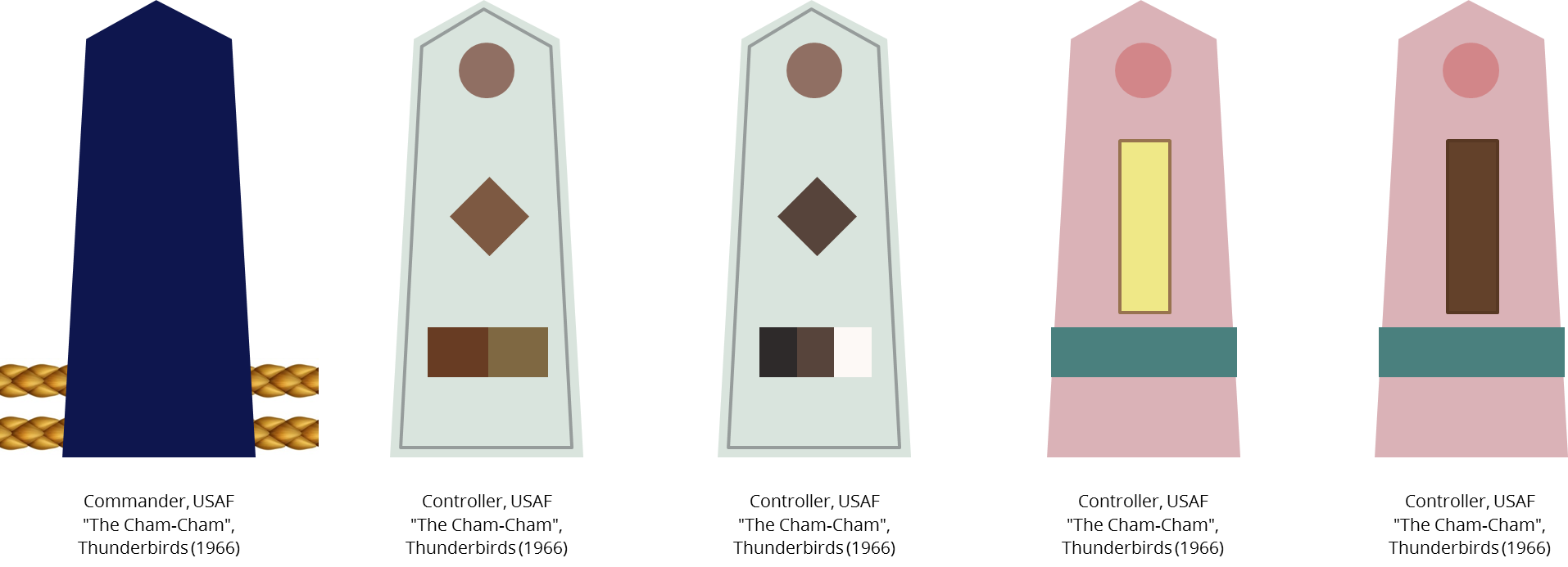 The last batch are the oddest; they were worn by men in a control tower. I don’t think there was ever a mention of rank, so how they hang together, I have no idea.