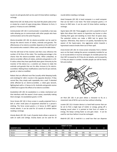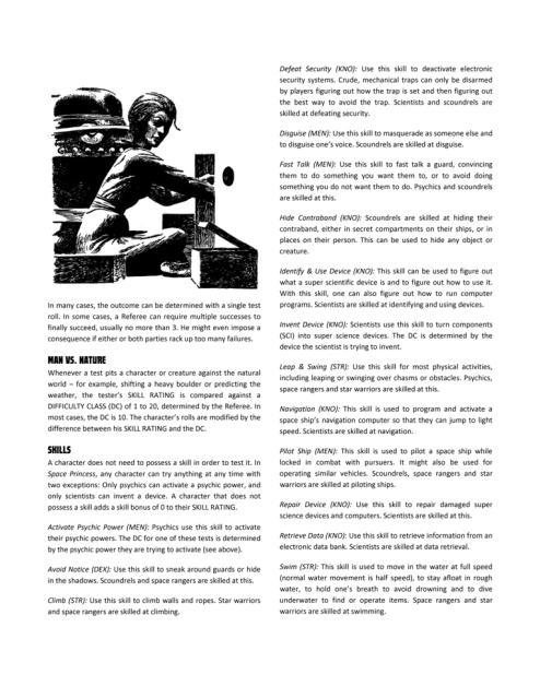 I kept the equipment pretty simple, with some basic gear like weapons and spaceships, and then super-science gear – essentially the same as magic items.