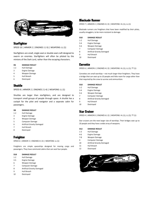 Gameplay was designed to be divided into two phases. The first was the exploration of the space fortress to find and rescue the “space princess”, which can be an actual captive princess or a captive prince, or super weapon, or space station plans, or whatever you want it to be. The second phase is where the adventurers escape in their spaceship. They need a few turns before they can jump into hyperspace, and in the meantime have to battle some enemy fighters, a la Star Wars. Just as old D&D didn’t really deal with life outside of dungeon delving and stronghold-building, Space Princess kept it simple.