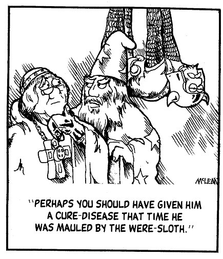 Cadaver: HD 2; AC 6 [13]; Atk 2 claws (1d4 + disease) and bite (1d6 + disease); Move 12; Save 16; CL/XP 3/60; Special: Disease (fever, -1d3 Con per day until two successive daily saves are made), regenerates 1 hp/rd after being dropped to 0 hp.
