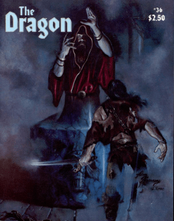 This week, I’m going to take a look at Dragon #55, from November 1981. This one has a really good beginning – a cover by Erol Otus. The best thing about the cover – I have no idea what that monstrous thing is. This, to me, lies at the heart of old school games – the freedom to invent something new every game, or to add all sorts of fun details to things old and well-known without the need to invent new mechanics.