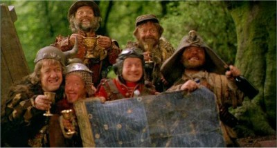 The Boys’ Day parade concludes with a mock Battle against the Big Folk, wherein the parade leader must fight a duel with his enemy, the Big Man. The Big Man is represented in pantomime by two halflings, one sitting atop the other’s shoulders. The Big Man first runs into the street, disrupting the parade and scattering all the participants. He then steals a pie, knocks down a mock-hobble, and attempts to carry off a sheep. The parade leader chases the Big Man around the village square, sometimes losing his spear in the process. Finally, he either strikes the Big Man down with his spear or runs the Big Man out of town with the help of the militia by throwing pies at him. Once the Big Man is dead or driven off, the Battle ends and the halflings triumphantly carry the parade leader around the village on a shield or large platter, ending up at the Feast. Then they eat until they keel over.