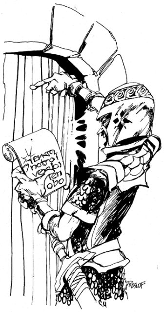 The first real article is dedicated to the much maligned cleric class. “The Role of the Cleric – Warriors with Wisdom” is by Robert Plamondon, and it does a nice job of explaining the class, some of its inspirations and ways to play it well. If the image below, by Jim Holloway, doesn’t make you want to play the class, I don’t know what will …
