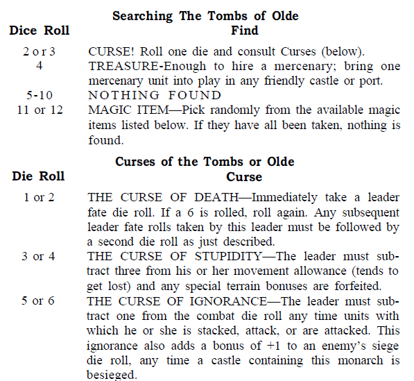 Dragon #60 includes a complete game – Flight of the Boodles – by Chuck Stoll of Louisville, KY. It recreates the epic journey of the boodles through the “Grumjug-infested passes of the Snagrock Mountains”. The art makes it look like a fun game to me. The map and counters are included – with a little work you could probably recreate them in a cleaner format and print them out to play the game. Each player takes the side of the Boodles or Grumjugs, purchases the pieces they are going to use in their force, and then goes at it, the Boodles trying to break through the mountains and the Grumjugs trying to stop them. Basically – a fun little wargame.