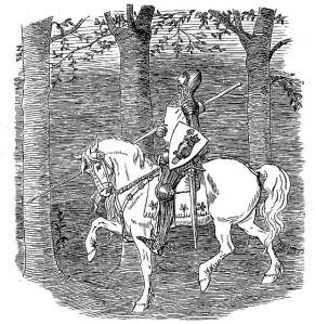 346. Knight 15c Plate armor, horseman’s mace, barding