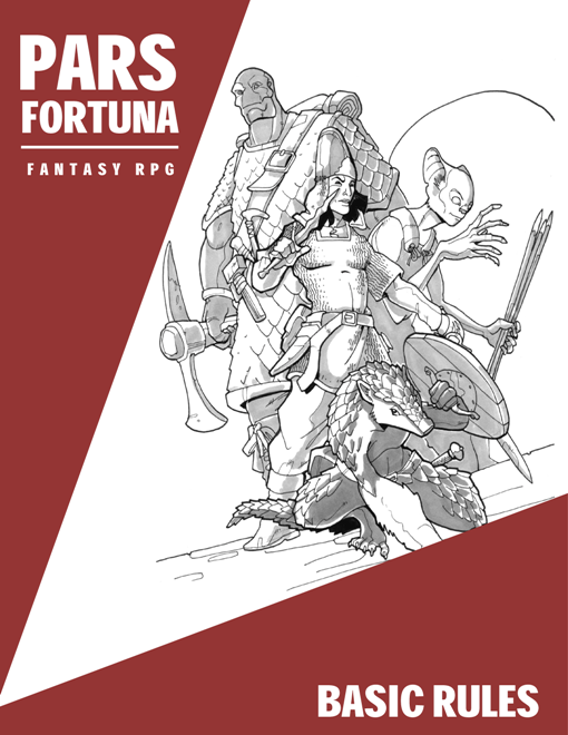 In Pars Fortuna Revised, I’m going to bring the rules more in line with what will be, next year, a revised Bloody Basic. Mostly just messing with saves and skills – nothing earth shattering. The race/classes will get some more options (essentially a warrior, skill monkey and magician class for each race). Pars Fortuna’s spell system will remain intact, and I’ll add in a few extras that I created after it was published and maybe a few things that have been bouncing around my head for a while.