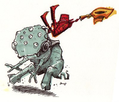 2. Quick Creatures: Quick creatures move and attack – again, to determine first strike just throw dice, giving creatures/characters a bonus of +1 to their role if they have a longer weapon or reach than their opponent. You could also break up the movement and the attack – everyone moves, and then anyone within 10′ of an opponent is considered in melee and may attack, rolling to determine who strikes first.