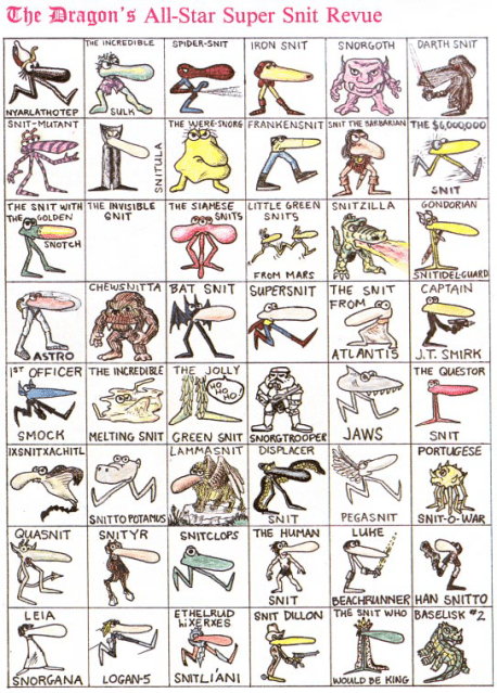 I always love this feature – stats for literary characters, which also served as a way of introducing little squirts like myself to fantasy literature. This issue has Poul Anderson’s Sir Roger De Tourneville (NG 10th level fighter), a 14th century English warrior who took over an alien spaceship that planned on conquering the Earth. I’ve never read The High Crusade, but I must say I’m intrigued.