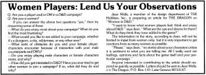 Also – Jean Wells was trying to write an article about female gamers and they put in this ad: