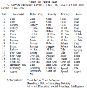 I’ve never played Traveler, so I can’t comment on the utility of this article about diplomats in the Traveler Universe. I can, however, draw attention to this table, which may prove useful to people: