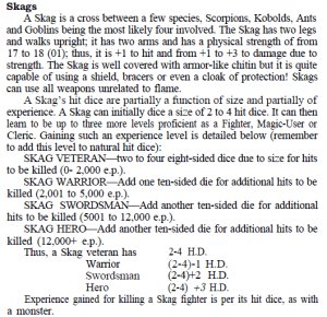 I also have to mention the “skags”, which are a blend of scorpion, kobold, ant and goblin. This is actually a sort of “monster class” – dig it: