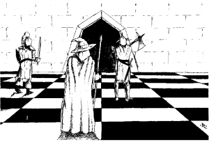 A year earlier, TSR had hired my good friend Erol Otus as a staff artist. After visiting Erol out in the chilly wastes of Wisconsin, and learning that—contrary to what I had heard—the men and women of TSR were not evil, hateful creatures, I decided that perhaps a job with TSR was the kind of change I was looking for. So with several years of playing experience and authorship of two fantasy roleplaying supplements under my belt (Booty and The Beasts and The Necromican co-authored with Mathias Genser and Erol Otus) I started work on the Temple of Poseidon.”