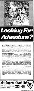 This issue of WD starts a series by Lewis Pulsipher, “An Introduction to Dungeons & Dragons”. Good series, and worth the read for the newcomers to the hobby – although I’ve always thought learning to play these games is much better done by joining an existing group and playing. In the early days of the hobby, though, this wasn’t always possible and many groups were learning as they went.