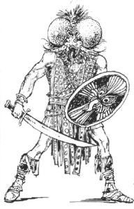There is an article about introducing aging into the Ringside game, of which I know nothing. It is followed up by the “Jo-Ga-Oh – Little People of the Iroquois” by Conrad Froehlich. These are stats for three “monsters” that are quite groovy.