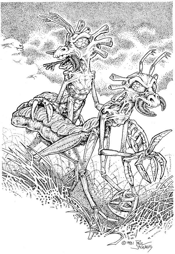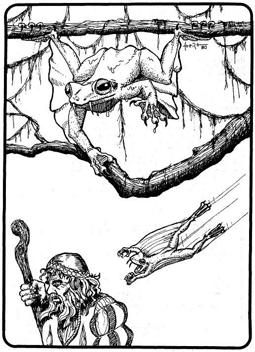 There is an article about introducing aging into the Ringside game, of which I know nothing. It is followed up by the “Jo-Ga-Oh – Little People of the Iroquois” by Conrad Froehlich. These are stats for three “monsters” that are quite groovy.