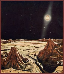Four Day Planet is not fine literature – it’s not even among the better scientifiction that I’ve read (or listened to, in this case). The dialogue is stilted, the plot is okay as it goes – nothing ground breaking, but told competently – and the characters are pretty wooden. So why would I recommend it? Because it strikes me as a wonderful “gazetteer” for games like Traveler – a really well realized and interesting setting for science fiction games.