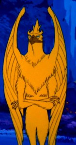 Betelgeusians evolved from leopard-like birds – perhaps something akin to griffons. They have retained the talons and bone structures of predatory birds, but walk upright, and have two mouths. One mouth is used for speaking, the other for eating. Their home planet is Betelgeuse IV. Betelgeusians are known to be aggressive, but also calm and decisive. They have a strong hunting instinct.