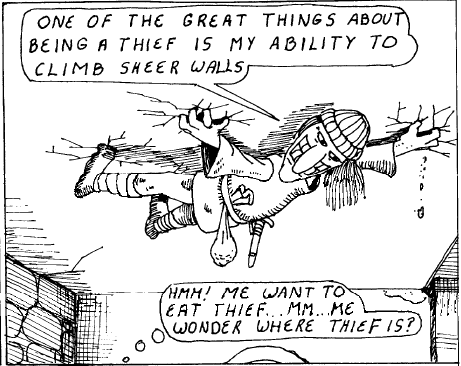 A classic of old Dragon (hell, a classic of modern articles as well, in as much as it addresses the idea of “balance” between characters). Ronald includes a few ideas of controlling these damn wizards so they don’t mess up the game. Interesting, because it introduces the idea of forced fairness to the game – i.e. I want the game to go one way, but the rules aren’t allowing that to happen. Think of the article previous – the explorer explores a lost city and you roll a dice and that determines what happens – amazing wealth or complete insanity. That’s it. Why? It’s a game, and those are the rules, and playing the game is more important than winning. Or, to state it another way, winning or losing should be a product of the game experience, not a preconceived idea that the game play must support. Why not have wizards who “ruin” the game with fireballs and charm spells? Let everybody have their time to shine, and play it smart. A fireball is a tricky thing, and over reliance on them might be a wizard’s undoing.